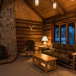 One of the original log buildings at our Resort, yet very popular, this modernized spacious cabin has an open view wood burning stove and a screened-in porch.